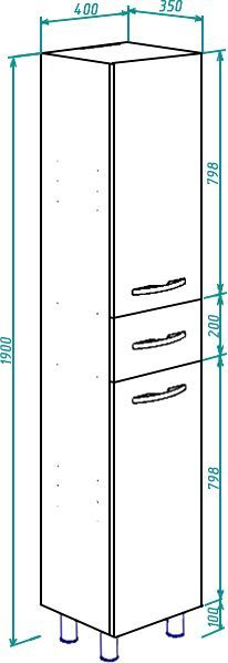 Вместительное хранение: При компактной ширине (40 см) пенал использует высоту (190 см), предлагая пространство для полотенец, косметики и бытовых мелочей. В зависимости от модификации可能 включает бельевую корзину.