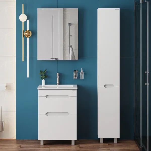 Напольный пенал для ванной комнаты Onika Айленд 30 сочетает в себе стильный минималистичный дизайн, белую глянцевую поверхность и высочайшее качество исполнения.