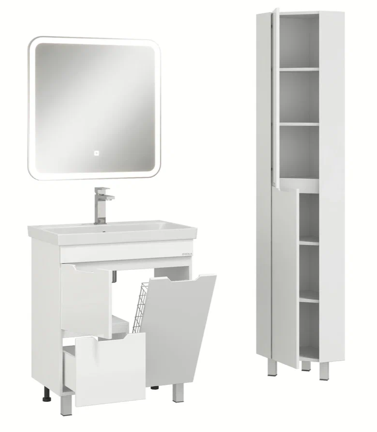 Напольный угловой шкаф пенал с зеркалом для ванной комнаты Айленд 30 сочетает в себе стильный минималистичный дизайн, белую глянцевую поверхность и высочайшее качество исполнения.