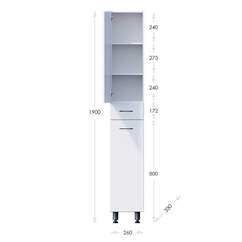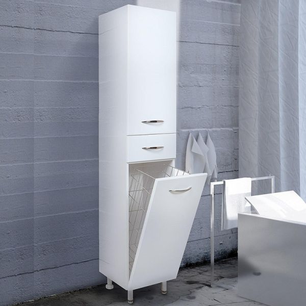 Напольный пенал для ванной комнаты с корзиной для белья Onika МОДЕРН 26, благодаря простому минималистичному дизайну, белому глянцевому фасаду, подойдет под любой интерьер ванной комнаты.