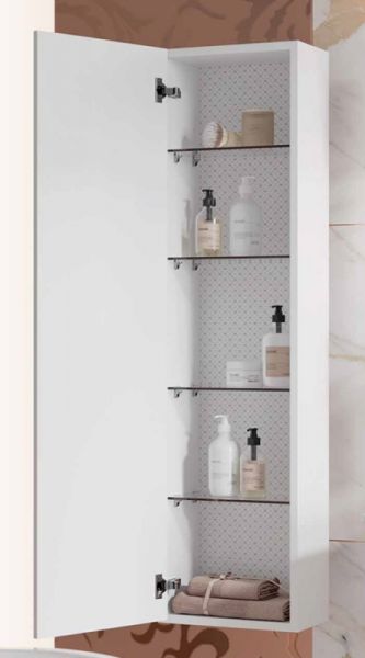 Подвесной шкаф-пенал Clarberg Elegance 40 EL0504GL с объемным узором, с одной распашной дверцей и пятью стеклянными полками. Для использования в ванных комнатах с повышенной влажностью.Технические данные:Цвет: матовый белый с золотом.