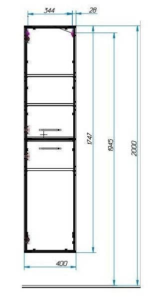 Коллекция Vegas разработана в современном стиле с учетом комфорта и функциональности. За счет вкладных фасадов мебель возможно выполнить в двухцветном исполнении абсолютно в любом сочетании (по каталогу RAL). Vegas дает возможность исполнить индивидуальное решение. Пенал состоит из двух частей. В верхней части расположены 2 полки для хранения бытовых принадлежностей. В нижней части пенала расположена полка, дополнительно возможна установка бельевой корзины.