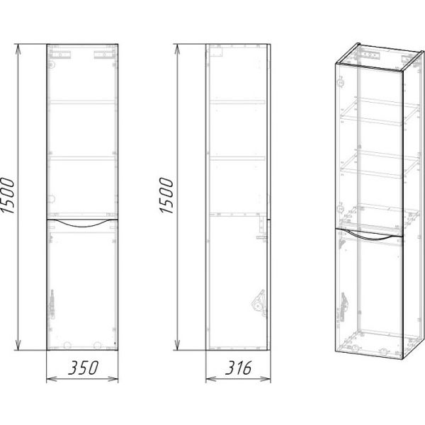 Подвесной пенал Талис-35 образует дополнительное пространство для хранения средств гигиены и аксессуаров, обеспечивая максимальную эргономичность ванной комнаты. Внутреннее пространство пенала поделено полками из ЛДСП на 3 секции. Пенал поможет разместить в небольшой ванной комнате все необходимые принадлежности. Система хранения