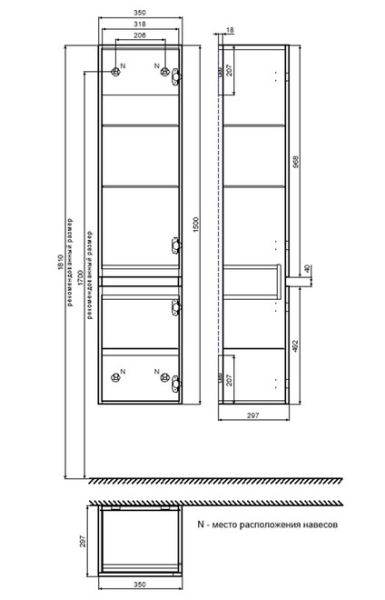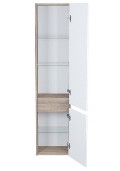 Корпус сделан из влагостойкой ЛДСП в уютном цвете «ясень-шимо», фасад – из влагостойкой ЛДСП, покрыты несколькими слоями белоснежной эмали. Такое качественное исполнение обеспечит долгий срок службы мебели во влажном помещении ванной (при соблюдении рекомендаций по уходу).