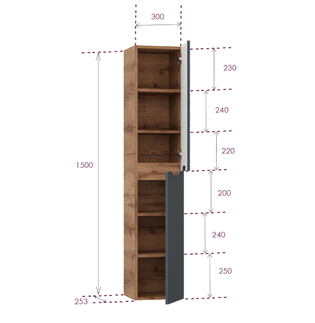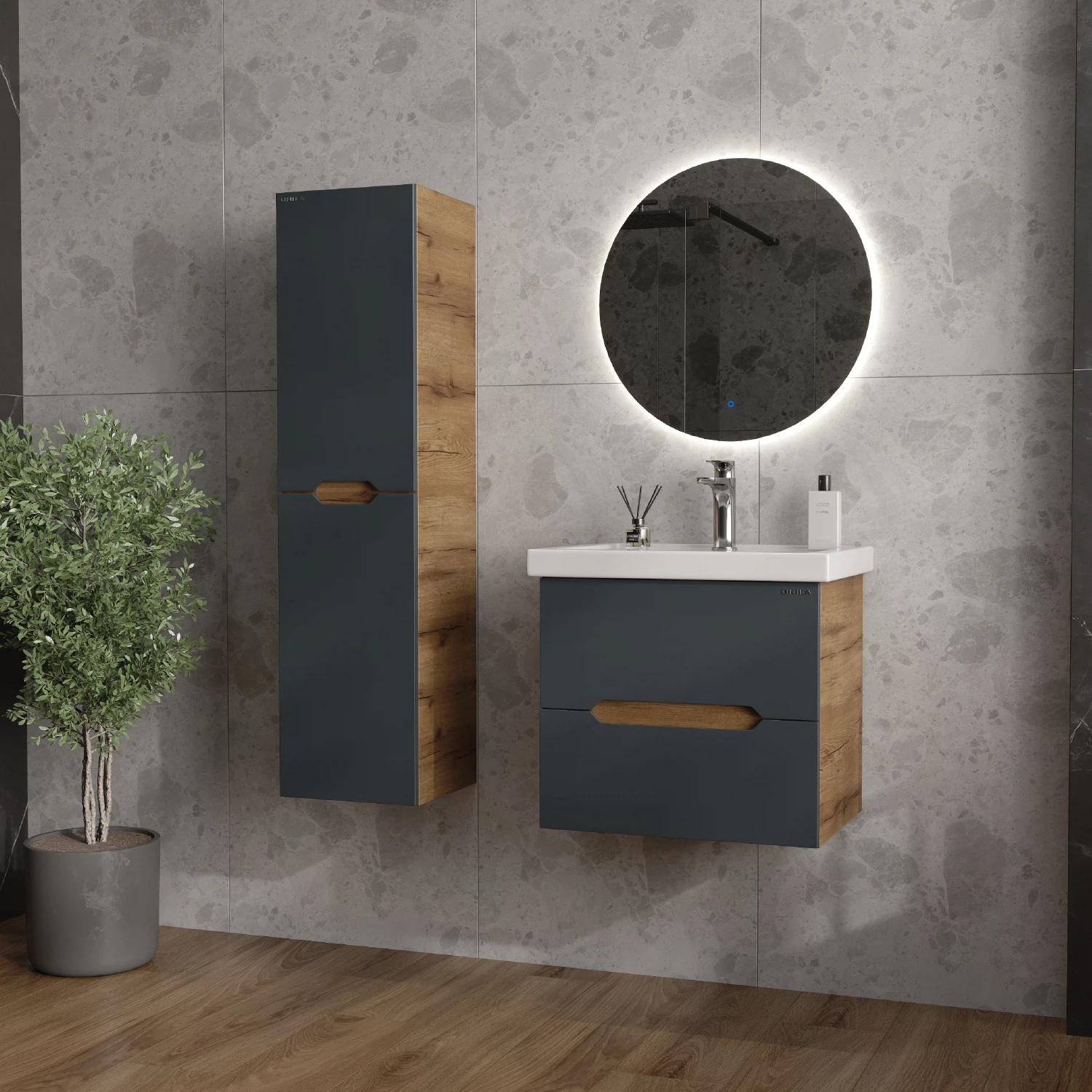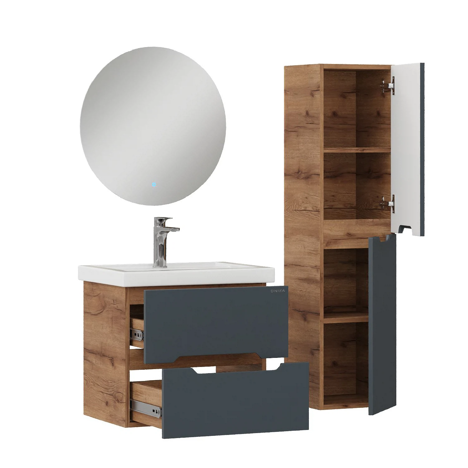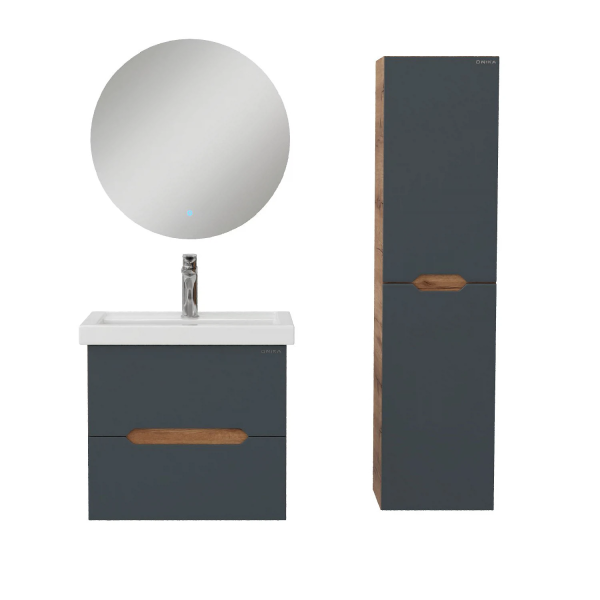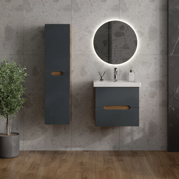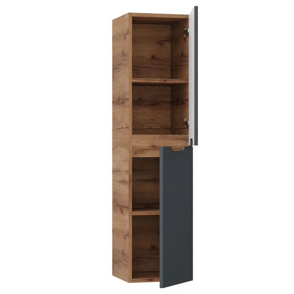 Подвесной пенал для ванной комнаты Onika Айленд 30 сочетает в себе стильный минималистичный дизайн, высочайшее качество исполнения и актуальные тренды цвета: графит и дуб крафт золотой.