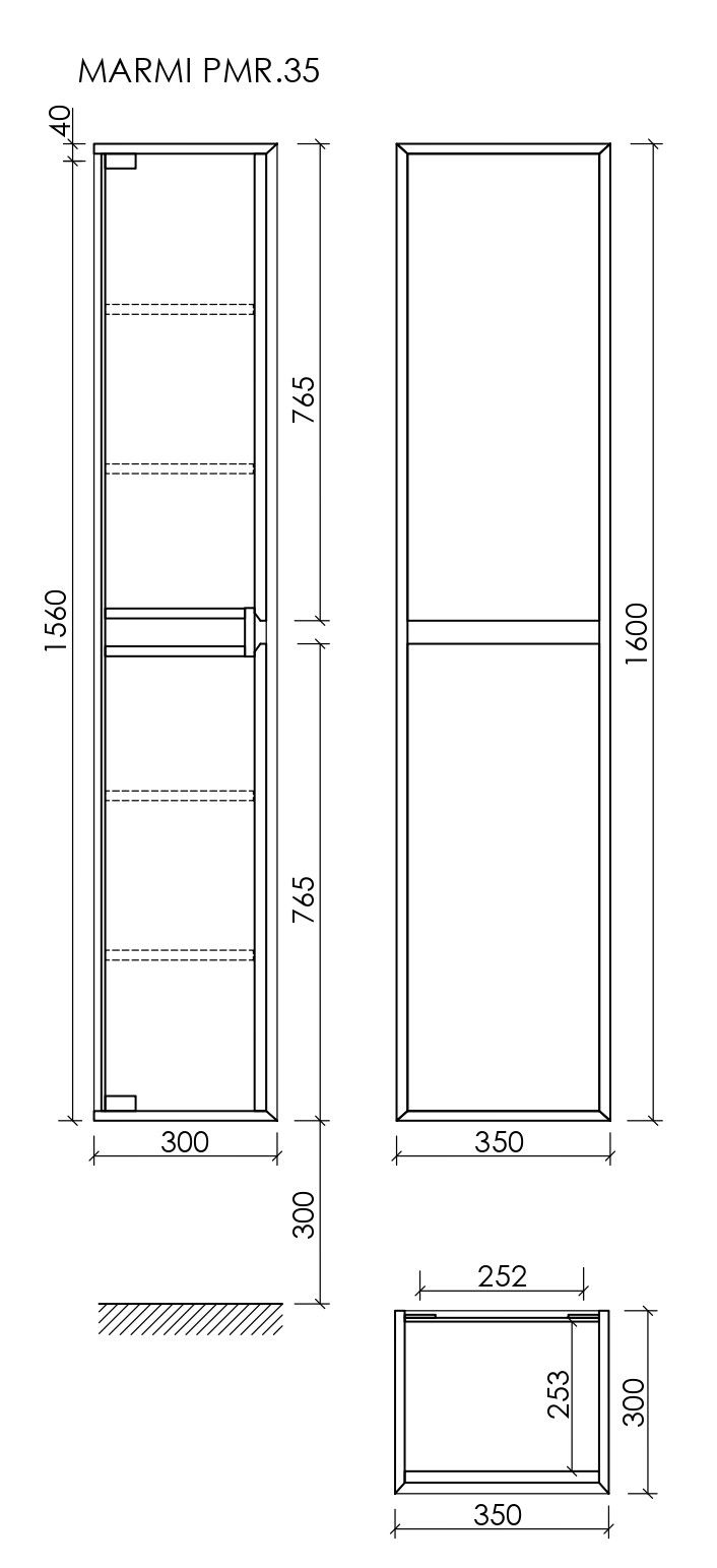 Шкаф-пенал SANCOS Marmi 1.0/Marmi 2.0 подвесной дуб галифакс натуральный, две дверцы, петли с доводчиками, расположение петель R/L, 350х300х1600 мм, арт. PMR35EG