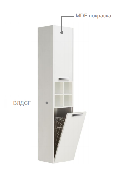 Пенал Roca Lago 7857297806 белыйШкаф-колонна:- верхний фасад: регулируемая полочка- нижний откидной фасад: корзина для белья