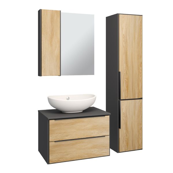 Шкаф-колонна подвесной имеет два отделения с распашными дверками. В верхнем отделении - две встроенные полки, в нижнем - одна. Выпускается только в правом исполнении.