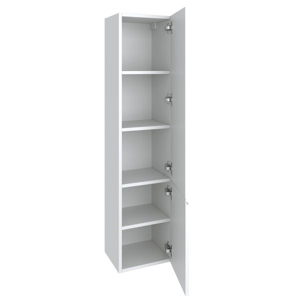 Шкаф-колонна подвесной с двумя отделениями и распашными дверками. В верхнем отделении - две встроенные полки, в нижнем - одна.  Выпускается только в правом исполнении.