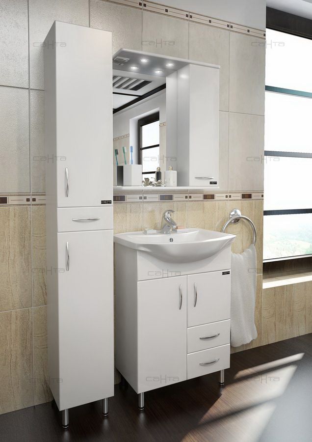 Шкаф-пенал СанТа отличное решение для создания комфортной атмосферы в любой ванной комнате. Напольный способ установки производится непосредственно на пол, при этом конструкция максимально устойчива при серьезных физических нагрузках. В производстве используют только качественные влагостойкие материалы (ВЛДСП), в составе которых полностью отсутствуют опасные вещества. Серия Вегас отличается превосходным дизайном с соблюдением всех существенных элементов современного стиля. Основным цветом, в котором выполнен шкаф-пенал СанТа является белый, безупречно впишется в любой дизайн проект. Шкаф-пенал предусматривает удобную и вместительную систему хранения, состоящую из дверей.Страной бренда СанТа является Россия, все товары производятся с выполнением соответствующих стандартов качества, что позволяет быть полностью уверенными в долговечности и надежности. Шкаф-пенал СанТа поможет сделать уютным любой интерьер и создать идеальную ванную комнату.