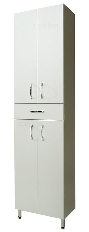 Шкаф-пенал СанТа отличное решение для создания комфортной атмосферы в любой ванной комнате. Напольный способ установки производится непосредственно на пол, при этом конструкция максимально устойчива при серьезных физических нагрузках. В производстве используют только качественные влагостойкие материалы (ВЛДСП), в составе которых полностью отсутствуют опасные вещества. Серия Вегас отличается превосходным дизайном с соблюдением всех существенных элементов современного стиля. Основным цветом, в котором выполнен шкаф-пенал СанТа является белый, безупречно впишется в любой дизайн проект. Шкаф-пенал предусматривает удобную и вместительную систему хранения, состоящую из дверей.Страной бренда СанТа является Россия, все товары производятся с выполнением соответствующих стандартов качества, что позволяет быть полностью уверенными в долговечности и надежности. Шкаф-пенал СанТа поможет сделать уютным любой интерьер и создать идеальную ванную комнату.