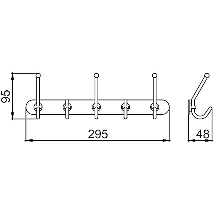 Планка с 5-ю крючками Frap F201-5 хром