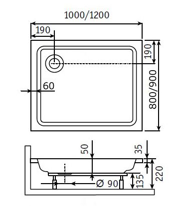 Поддон для душа RGW STYLE PR 800х1000х220