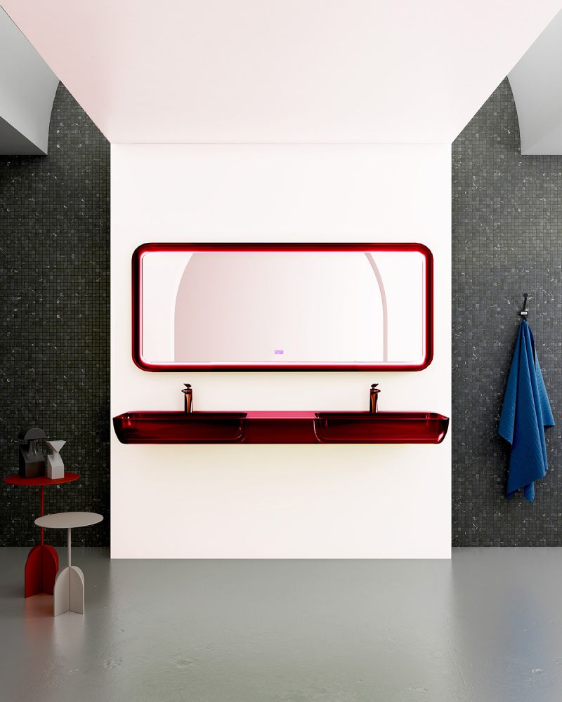 Подвесная раковина ABBER Kristall AT2807Rubin двойная 150см красный купить