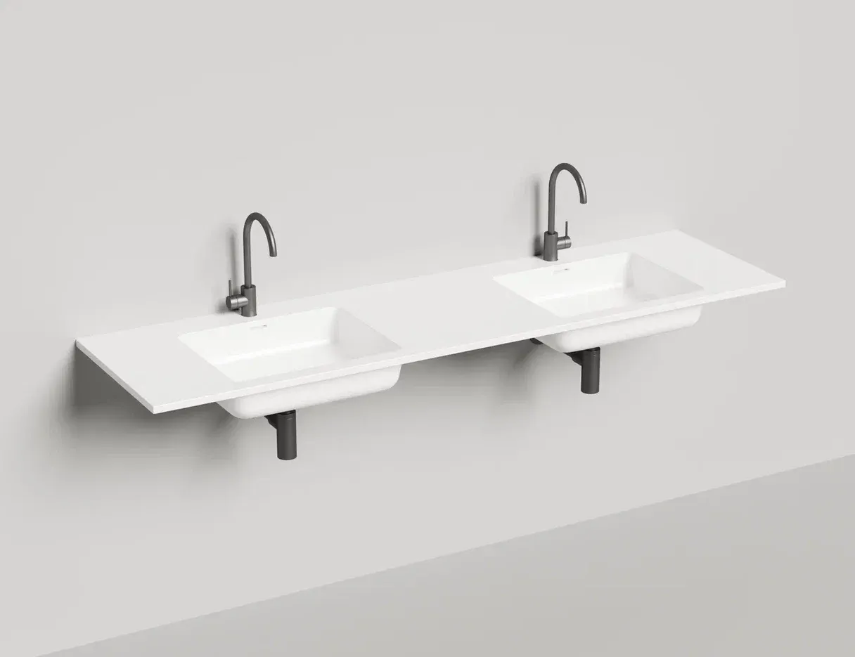 Функциональность, комфорт и сдержанная классика в одном флаконе.Новые раковины ONDA — это современное и рациональное решение для вашей ванной комнаты. Стильные модели визуально увеличивают пространство, внедряя в него больше воздуха и расширяя тем самым границы интерьера. ONDA 180 с двумя чашами позволяет использовать ванную комнату с двойной эффективностью и увеличивает зону личного пространства, которая так необходима семейным парам.Серия подвесных раковин выполнена в материале S-Stone. Изготовленные по технологии Solid Surface, раковины имеют полностью монолитную структуру по всей толщине изделия. Каждая раковина ONDA включает в себя удобную чашу и столешницу, на которой можно расположить туалетные принадлежности. Предлагаются раковины с одной и двумя чашами. Возможна подвесная установка с креплением на кронштейны к стене, а также использование раковины для оформления мебели для ванной комнаты по собственным чертежам, с учетом особенностей конкретного помещения.ONDA покорит вас своей эргономичностью и дизайном «вне времени», вписывающимся в любой интерьер. Преимущества