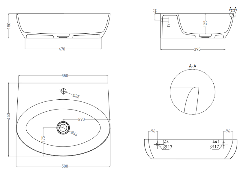 При заказе необходимо указать желаемый тип установки раковины: на стену или столешницу.