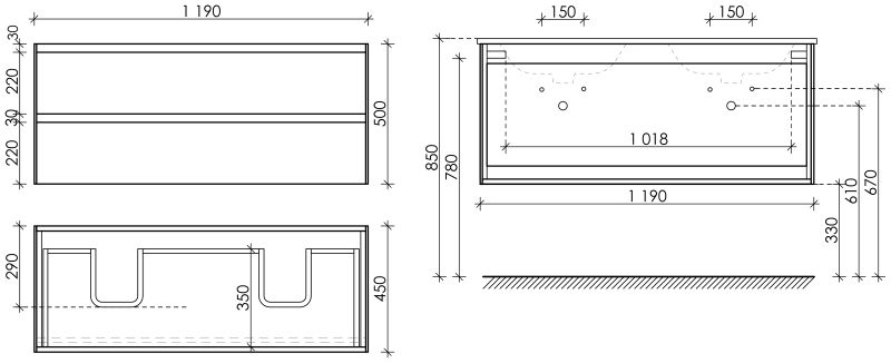 - Размер: Ш119 x Г45 x В50 см