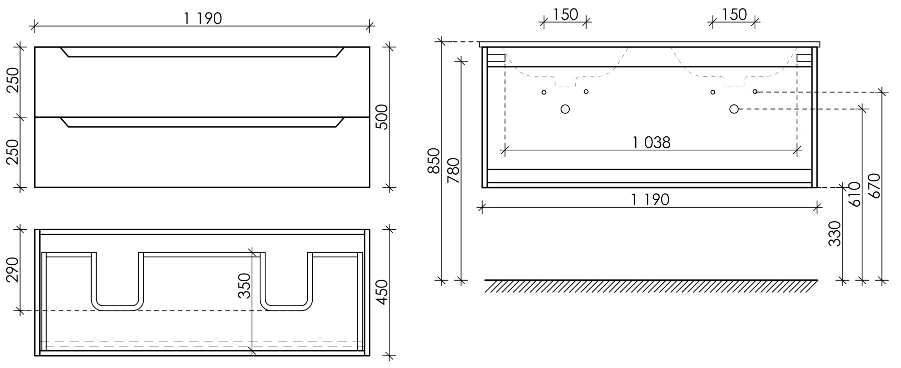 • Размер: Ш119 x Г45 x В50 см
