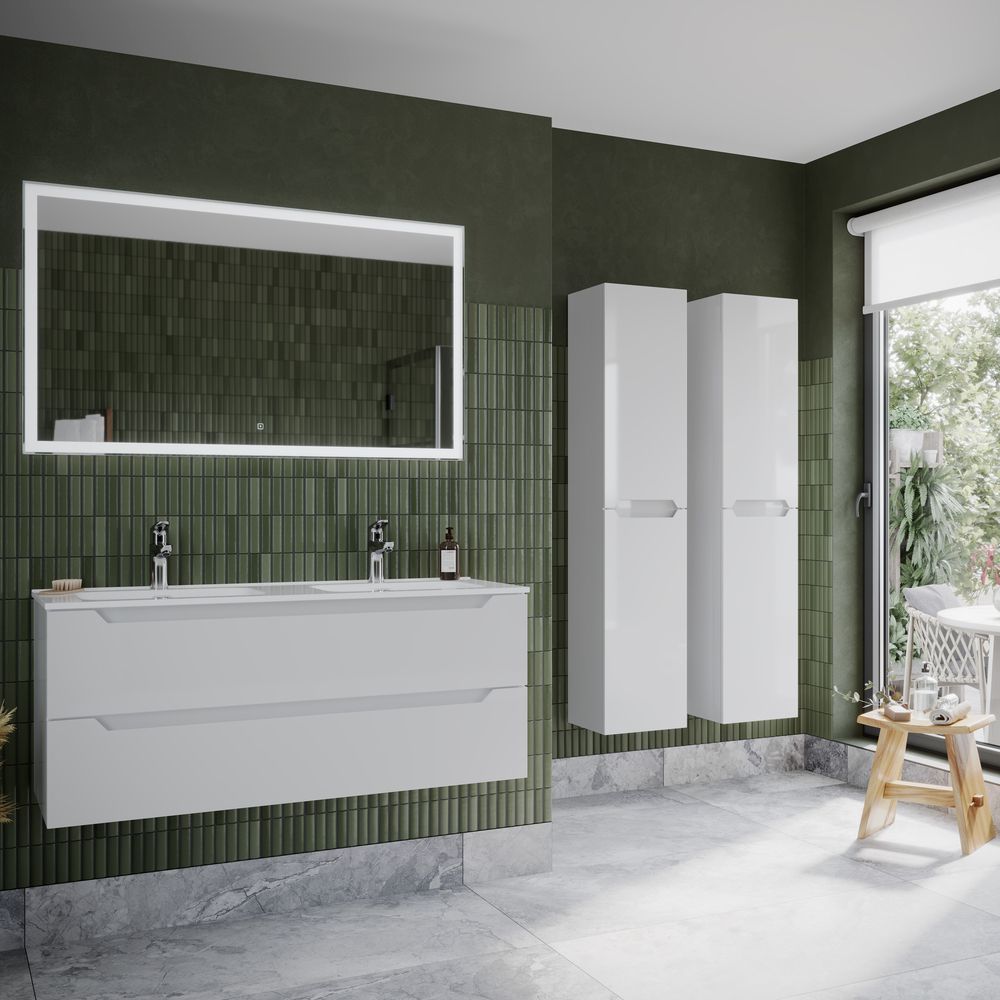 Подвесная тумба под двойную раковину Sancos Norma 2.0 NR2.0120-2W 120см белый глянец купить
