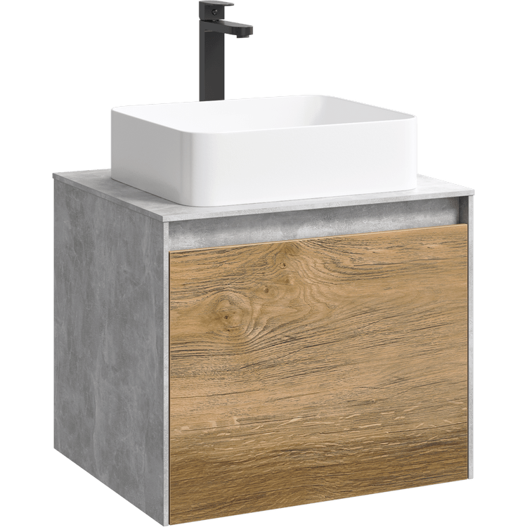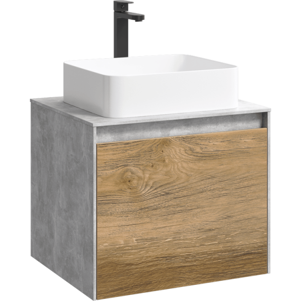 Подвесная тумба под раковину Aqwella Mobi MOB0106BS+MOB0706DB 60 смПодвесная тумба 60 см с двумя ящиками: основной и внутренний, скрытый за фасадом. Цвет бетон светлый/дуб балтийский; с умывальником