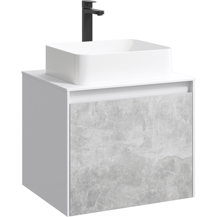 Подвесная тумба под раковину Aqwella Mobi MOB0106W+MOB0706BS 60 смПодвесная тумба 60 см с двумя ящиками: основной и внутренний, скрытый за фасадом. Цвет белый/бетон светлый; с умывальником