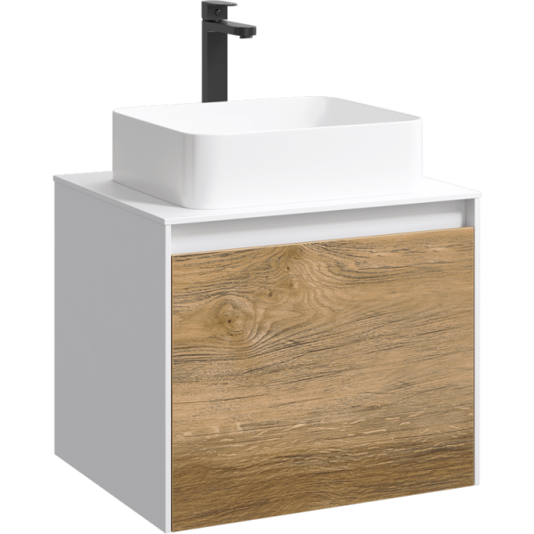 Подвесная тумба под раковину Aqwella Mobi MOB0106W+MOB0706DB 60 смПодвесная тумба 60 см с двумя ящиками: основной и внутренний, скрытый за фасадом. Цвет белый/дуб балтийский; с умывальником