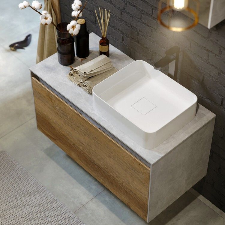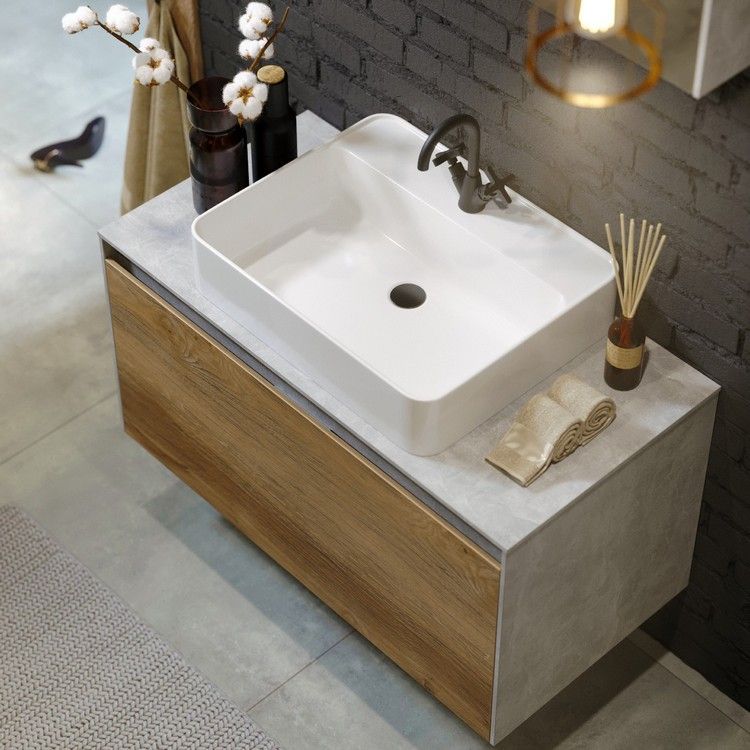 Подвесная тумба под раковину Aqwella Mobi MOB0110BS+MOB0710DB 100 смКоллекция Mobi гармонично вписывается в интерьер любой современной ванной комнаты. Так как существует возможность комбинировать фасады и корпуса трех цветов: бетон светлый, дуб балтийский и белый глянец.Подвесная тумба 100 см с двумя ящиками: основной и внутренний, скрытый за фасадом. Цвет бетон светлый/дуб балтийский; с умывальником