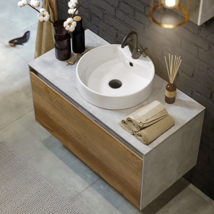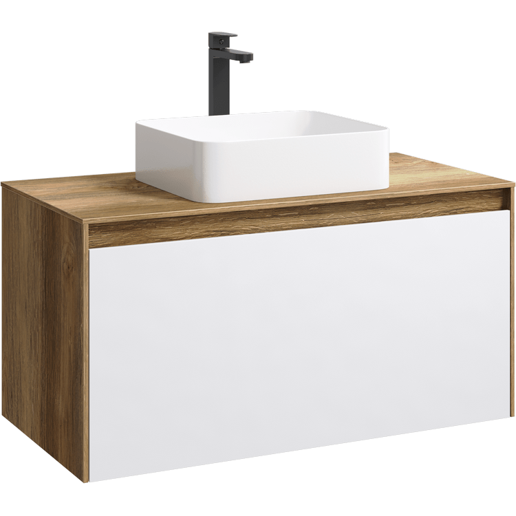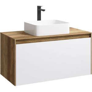 Подвесная тумба под раковину Aqwella Mobi MOB0110DB+MOB0710W 100 смПодвесная тумба 100 см с двумя ящиками: основной и внутренний, скрытый за фасадом. Цвет дуб балтийский/белый; с умывальником