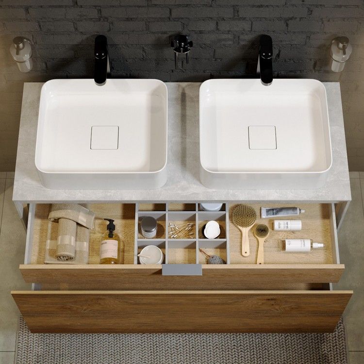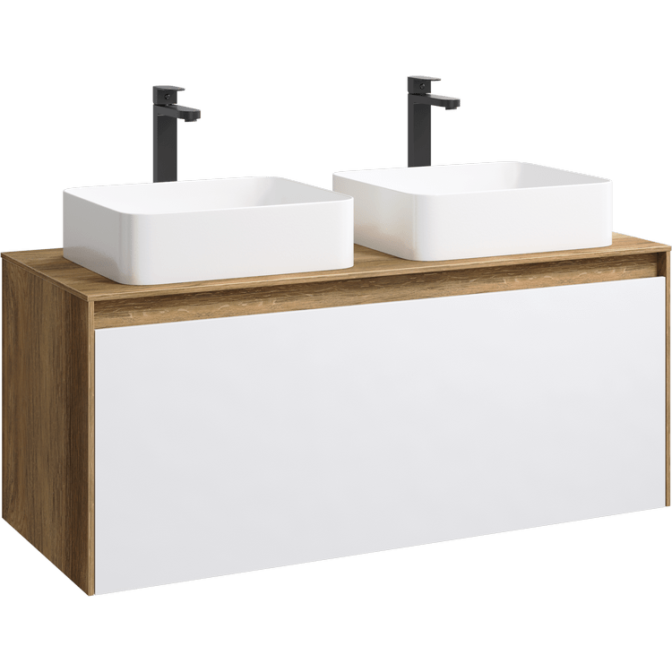 Подвесная тумба под раковину Aqwella Mobi MOB0112DB+MOB0712W 120 смПодвесная тумба 120 см с двумя ящиками: основной и внутренний, скрытый за фасадом. Цвет дуб балтийский/белый; с умывальником