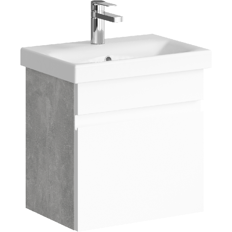 Подвесная тумба под раковину Aqwella Smart SRT0106BS 60 смПодвесная тумба с одним ящиком, цвет бетон светлый с умывальником