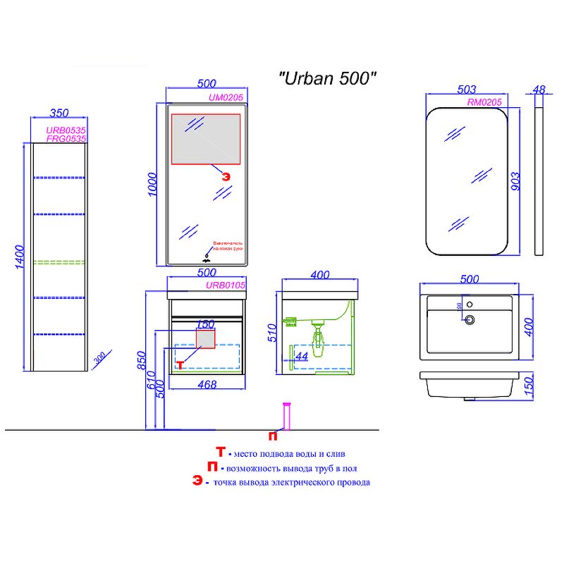 Подвесная тумба под раковину Aqwella Urban URB0105DD 50 см купить