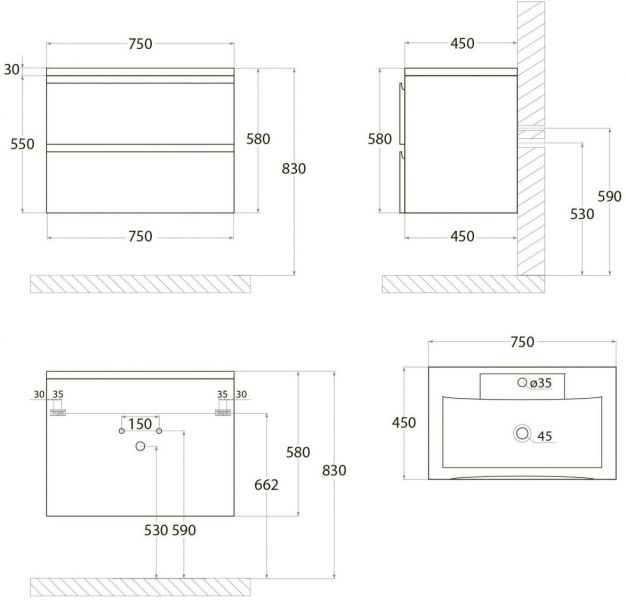 Тумба под раковину Art&Max выполнена в современном стиле и прекрасно впишется в интерьер любой ванной комнаты. Благодаря подвесной конструкции изделие не занимает много места, позволяет экономить пространство и облегчает уборку. Модель оснащена двумя выдвижными ящиками с направляющими скрытого монтажа с доводчиками. Фасад изделия выполнен из МДФ.Тумба может использоваться вместе с раковиной AM-LAV-750-MR-FP.Раковина и смеситель в комплект поставки не входят и приобретаются отдельно.Особенности:Матовое покрытие