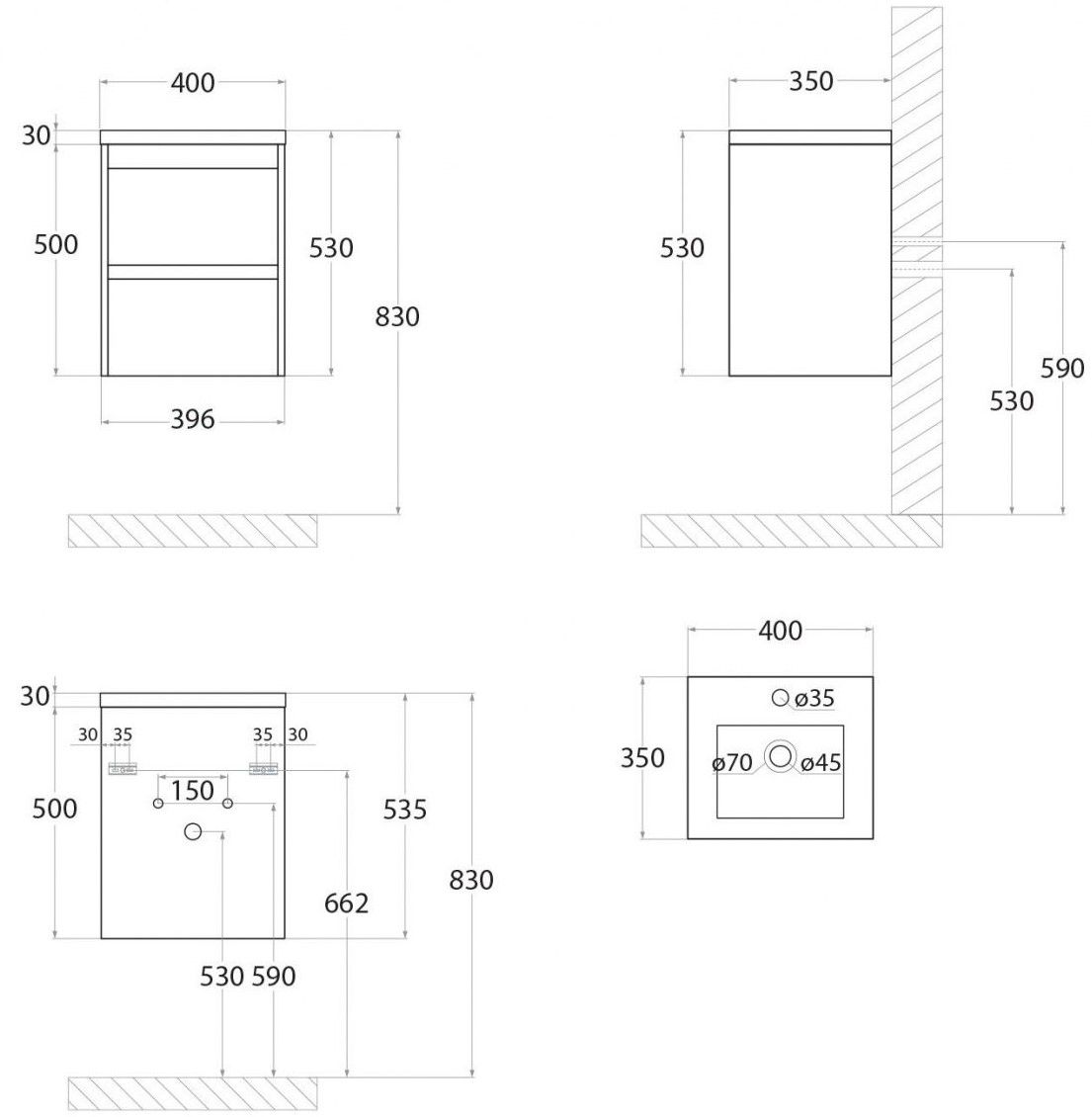 • Рекомендуемая высота от пола: 830 мм