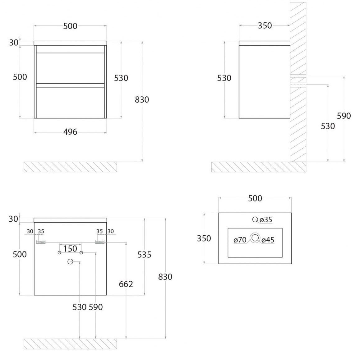• Рекомендуемая высота от пола: 830 мм