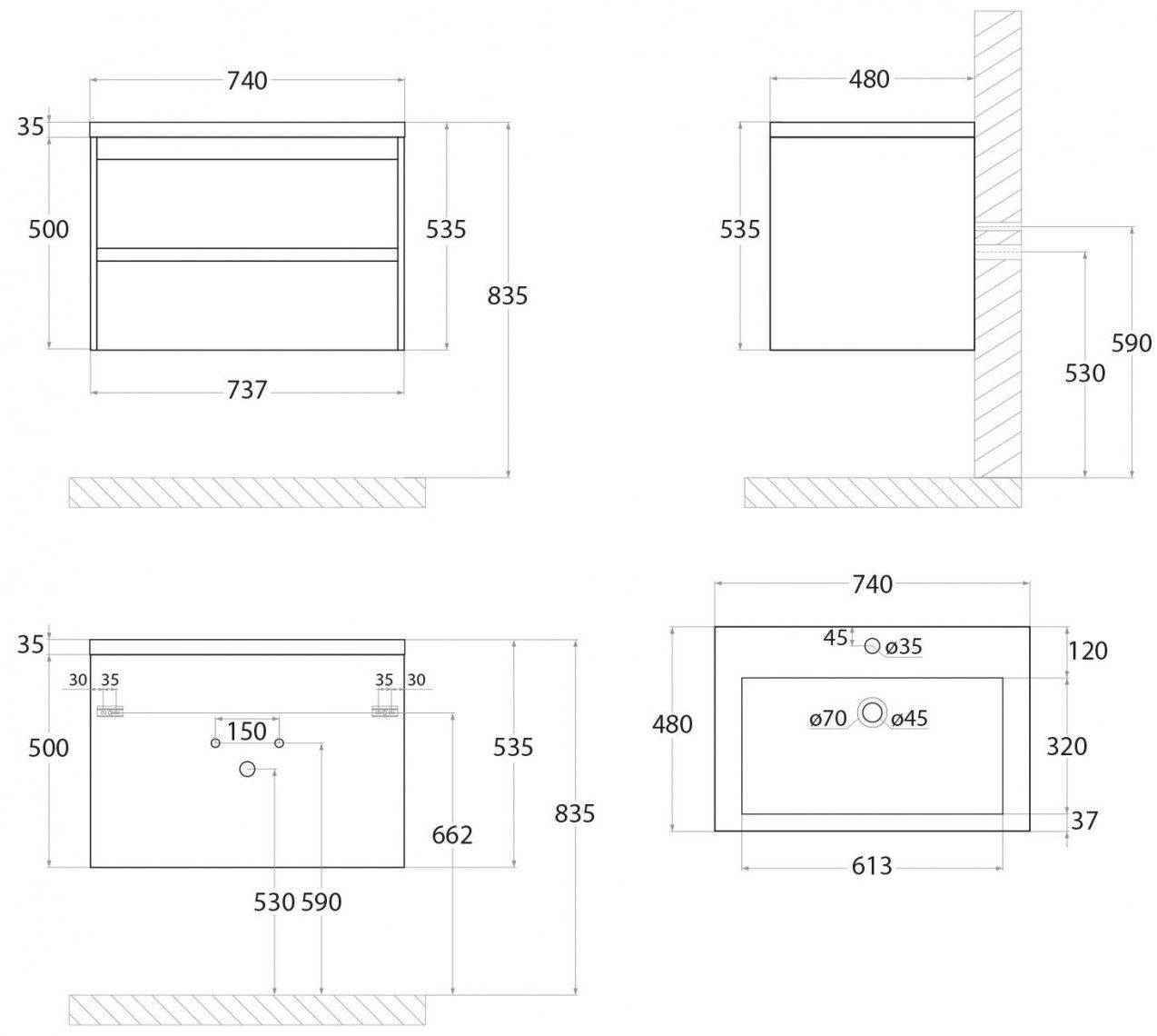 Тумба под раковину Art&Max выполнена в современном стиле и прекрасно впишется в интерьер любой ванной комнаты. Благодаря подвесной конструкции изделие не занимает много места, позволяет экономить пространство и облегчает уборку. Модель оснащена двумя выдвижными ящиками с доводчиками. Фасад изделия выполнен из ЛДСП.Тумба может использоваться вместе с раковиной AM-LAV-750-MR-A.Раковина и смеситель в комплект поставки не входят и приобретаются отдельно.Особенности: