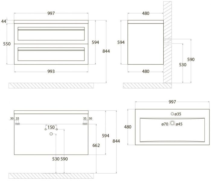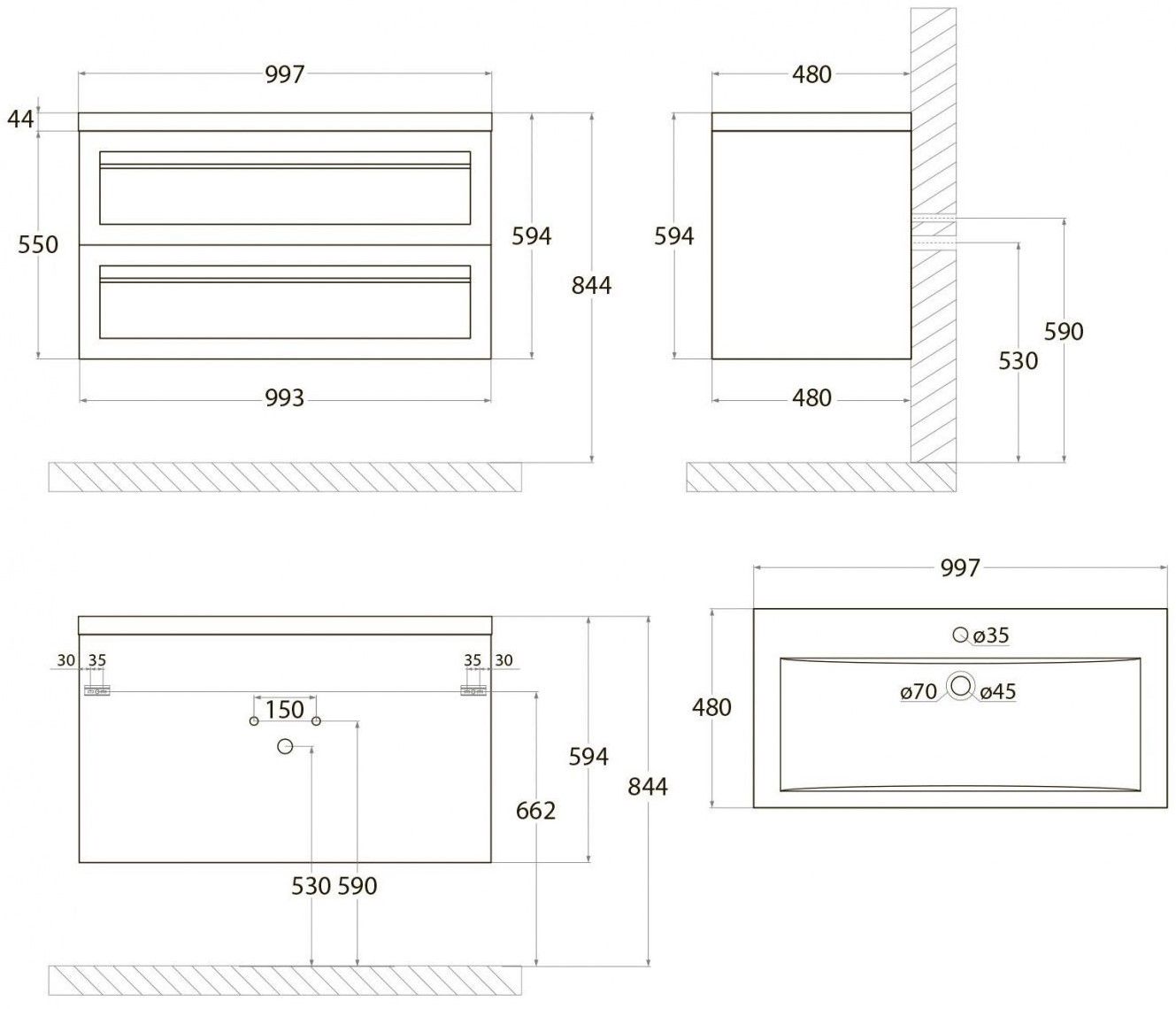Тумба под раковину Art&Max выполнена в современном стиле и прекрасно впишется в интерьер любой ванной комнаты. Благодаря подвесной конструкции изделие не занимает много места, позволяет экономить пространство и облегчает уборку. Модель оснащена двумя выдвижными ящиками с доводчиками. Фасад изделия выполнен из МДФ.Тумба может использоваться вместе с раковиной AM-LAV-1000-MR-A.Раковина и смеситель в комплект поставки не входят и приобретаются отдельно.Особенности: