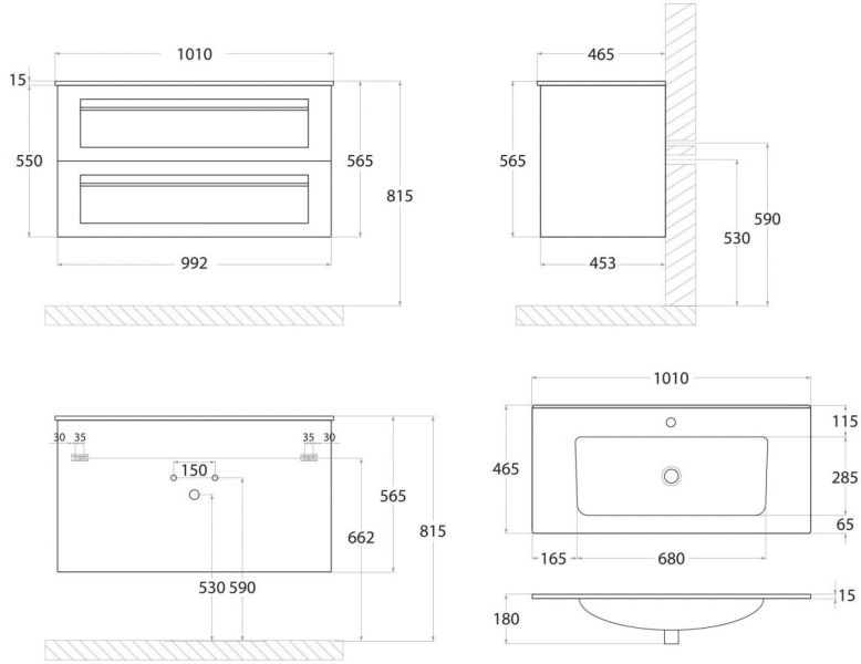 Подвесная тумба под раковину Art&Max Platino 100см чёрный матовый AM-Platino-1000-2C-SO-NM-Cer купить