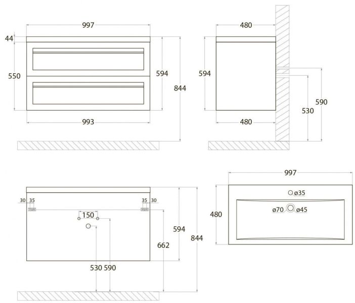 • Рекомендуемая высота от пола: 844 мм