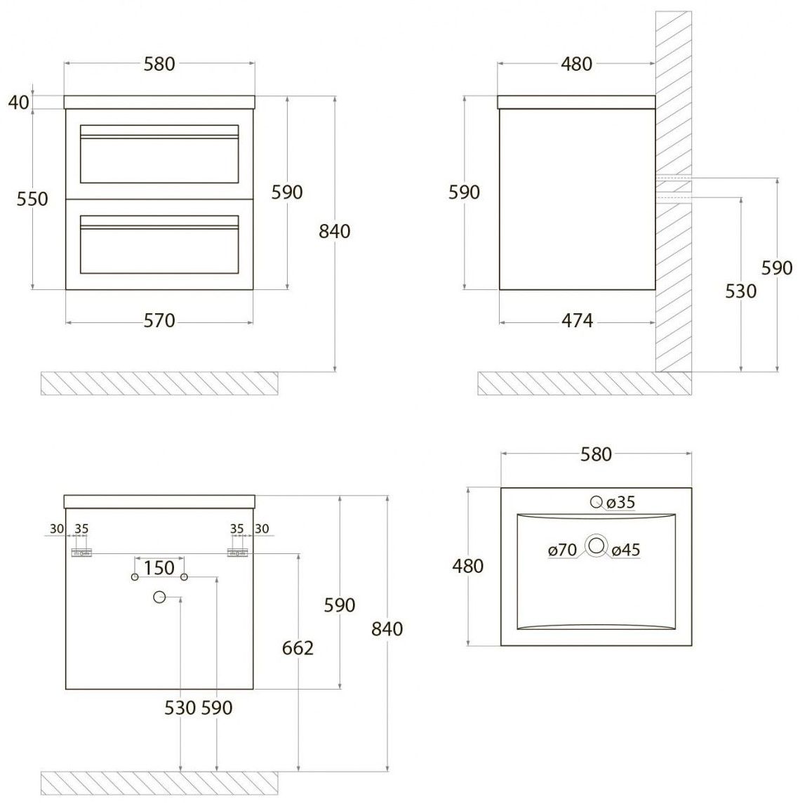 Тумба под раковину Art&Max выполнена в современном стиле и прекрасно впишется в интерьер любой ванной комнаты. Благодаря подвесной конструкции изделие не занимает много места, позволяет экономить пространство и облегчает уборку. Модель оснащена двумя выдвижными ящиками с доводчиками. Фасад изделия выполнен из МДФ.Тумба может использоваться вместе с раковиной AM-LAV-580-MR-A.Раковина и смеситель в комплект поставки не входят и приобретаются отдельно.Особенности: