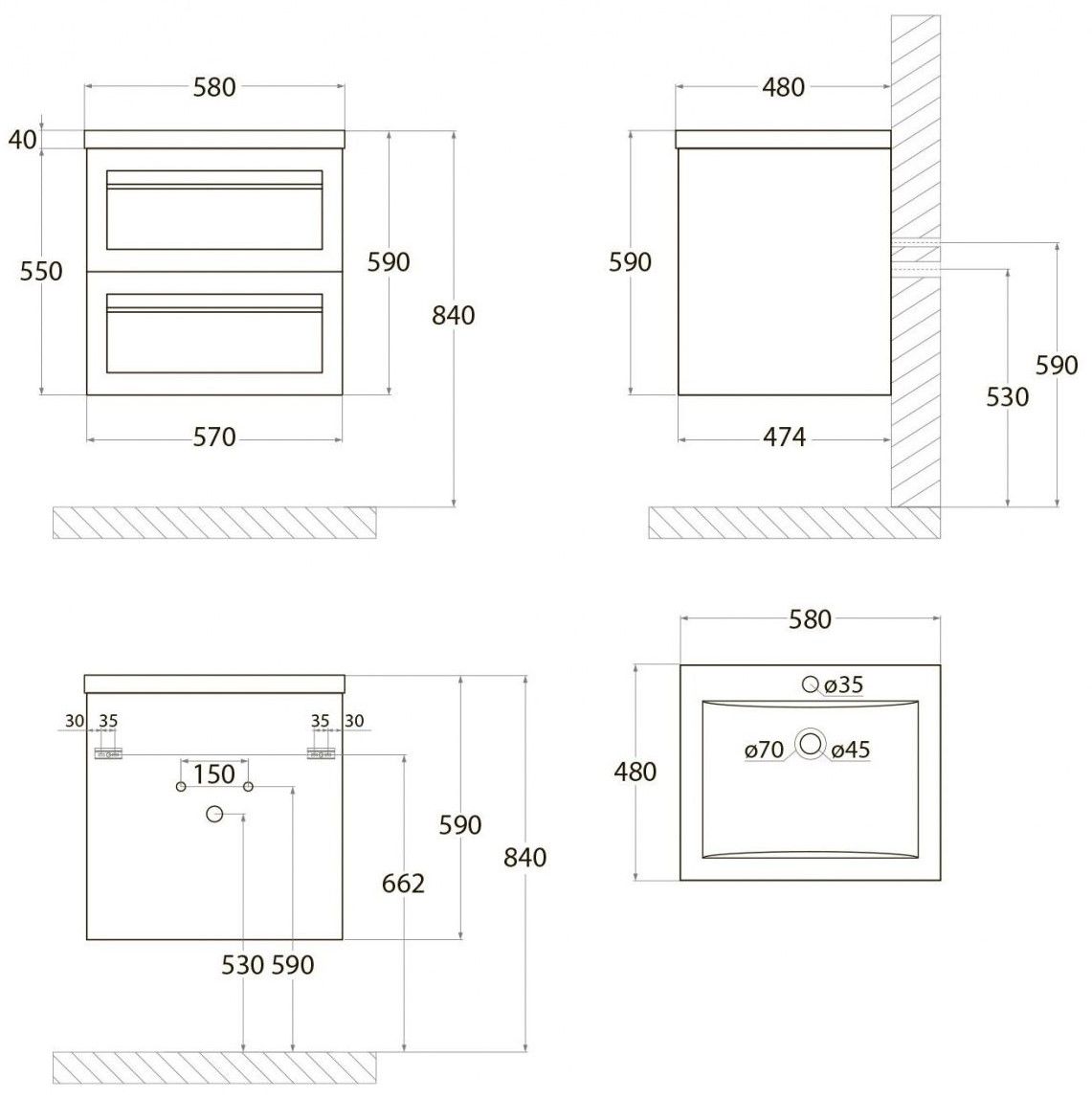 Тумба под раковину Art&Max выполнена в современном стиле и прекрасно впишется в интерьер любой ванной комнаты. Благодаря подвесной конструкции изделие не занимает много места, позволяет экономить пространство и облегчает уборку. Модель оснащена двумя выдвижными ящиками с доводчиками. Фасад изделия выполнен из МДФ.Тумба может использоваться вместе с раковиной AM-LAV-580-MR-A.Раковина и смеситель в комплект поставки не входят и приобретаются отдельно.Особенности: