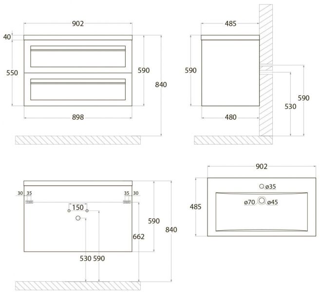 Тумба под раковину Art&Max выполнена в современном стиле и прекрасно впишется в интерьер любой ванной комнаты. Благодаря подвесной конструкции изделие не занимает много места, позволяет экономить пространство и облегчает уборку. Модель оснащена двумя выдвижными ящиками с доводчиками. Фасад изделия выполнен из МДФ.Тумба может использоваться вместе с раковиной AM-LAV-900-MR-A.Раковина и смеситель в комплект поставки не входят и приобретаются отдельно.Особенности: