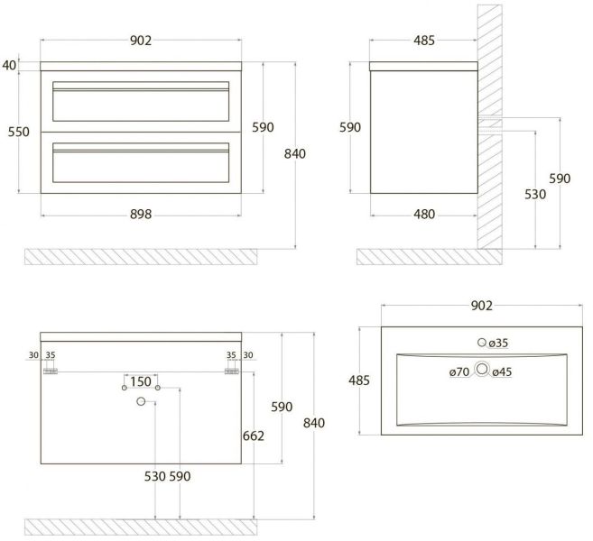 • Рекомендуемая высота от пола: 844 мм