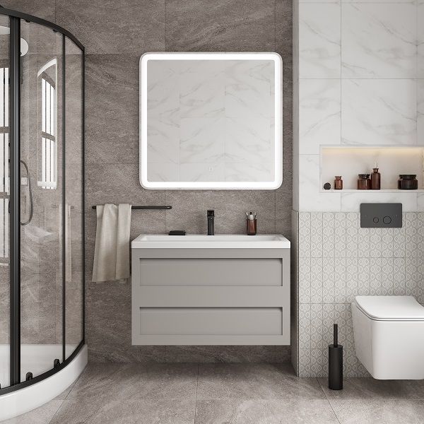 Подвесная тумба под раковину Art&Max Platino 90см светло-серый матовый AM-Platino-900-2C-SO-GCM