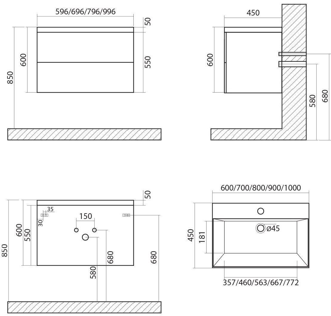 Тумба под раковину Art&Max выполнена в современном стиле и прекрасно впишется в интерьер любой ванной комнаты. Благодаря подвесной конструкции изделие не занимает много места, позволяет экономить пространство и облегчает уборку. Модель оснащена двумя выдвижными ящиками с направляющими скрытого монтажа, не полного выдвижения с доводчиками. Фасад изделия выполнен из МДФ, ящики - из ЛДСП.