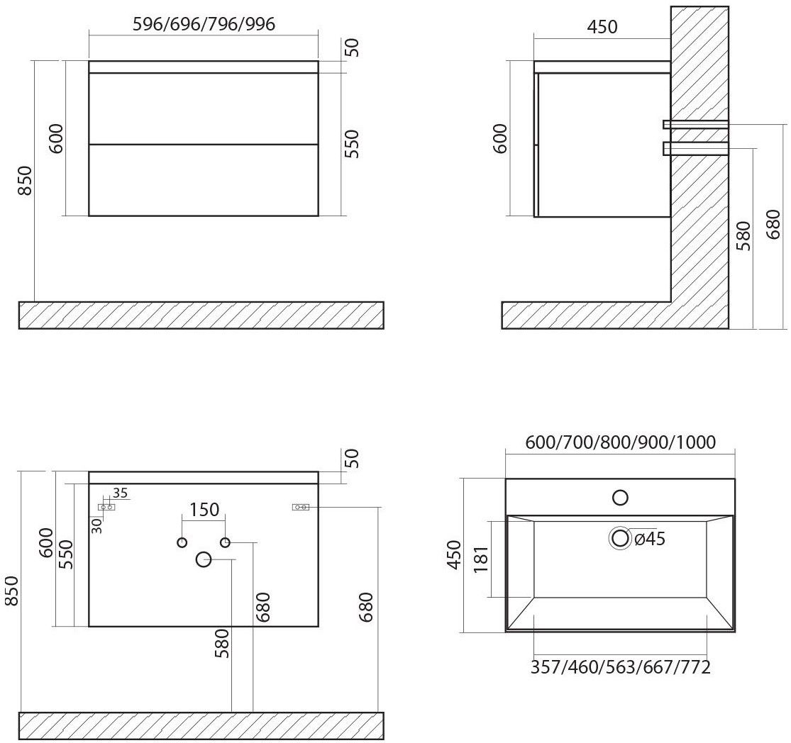 Тумба под раковину Art&Max выполнена в современном стиле и прекрасно впишется в интерьер любой ванной комнаты. Благодаря подвесной конструкции изделие не занимает много места, позволяет экономить пространство и облегчает уборку. Модель оснащена двумя выдвижными ящиками с направляющими скрытого монтажа, не полного выдвижения с доводчиками. Фасад изделия выполнен из МДФ, ящики - из ЛДСП.