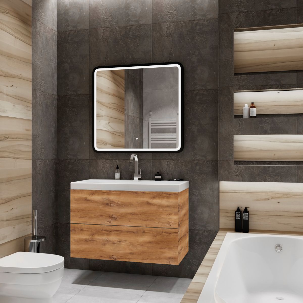Подвесная тумба под раковину Art&Max Verona Push 80см дуб кельтик AM-Verona-Push-800-2C-SO-RK