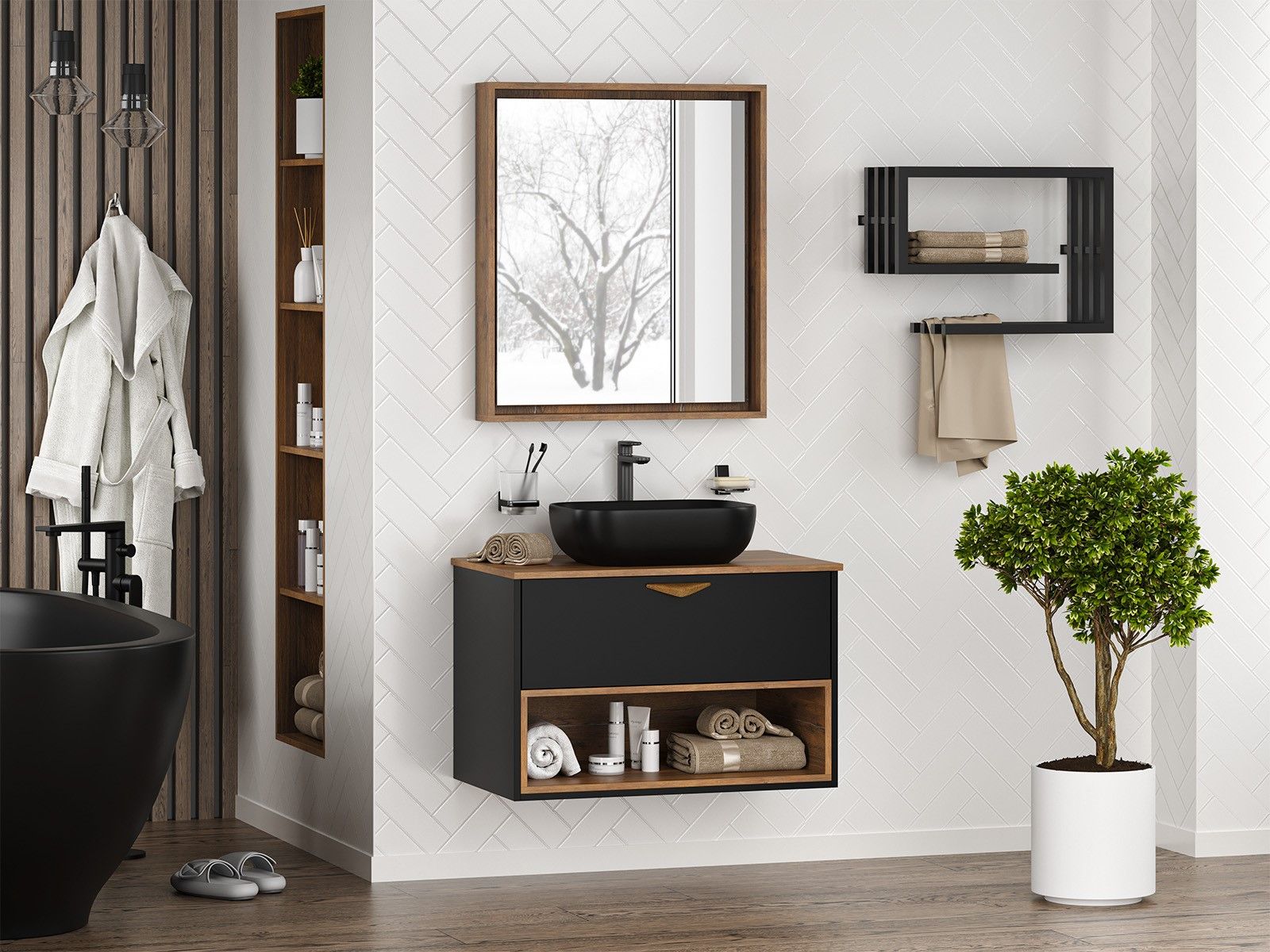 Подвесная тумба под раковину Brevita Bergen BER-07080-19-02-1Я с подсветкой 80см дуб Галифакс олово/чёрный купить