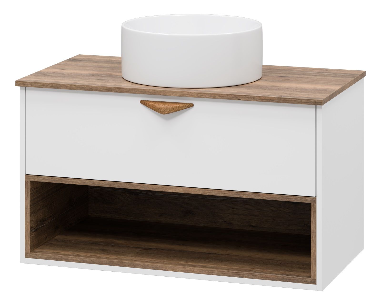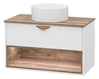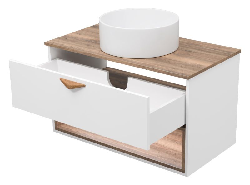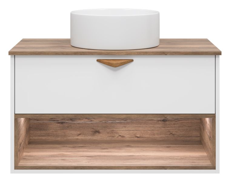 Подвесная тумба под раковину Brevita Bergen BER-07090-19-01-1Я с подсветкой 90см дуб Галифакс олово/белый