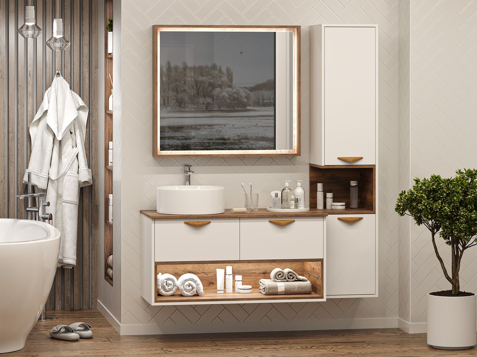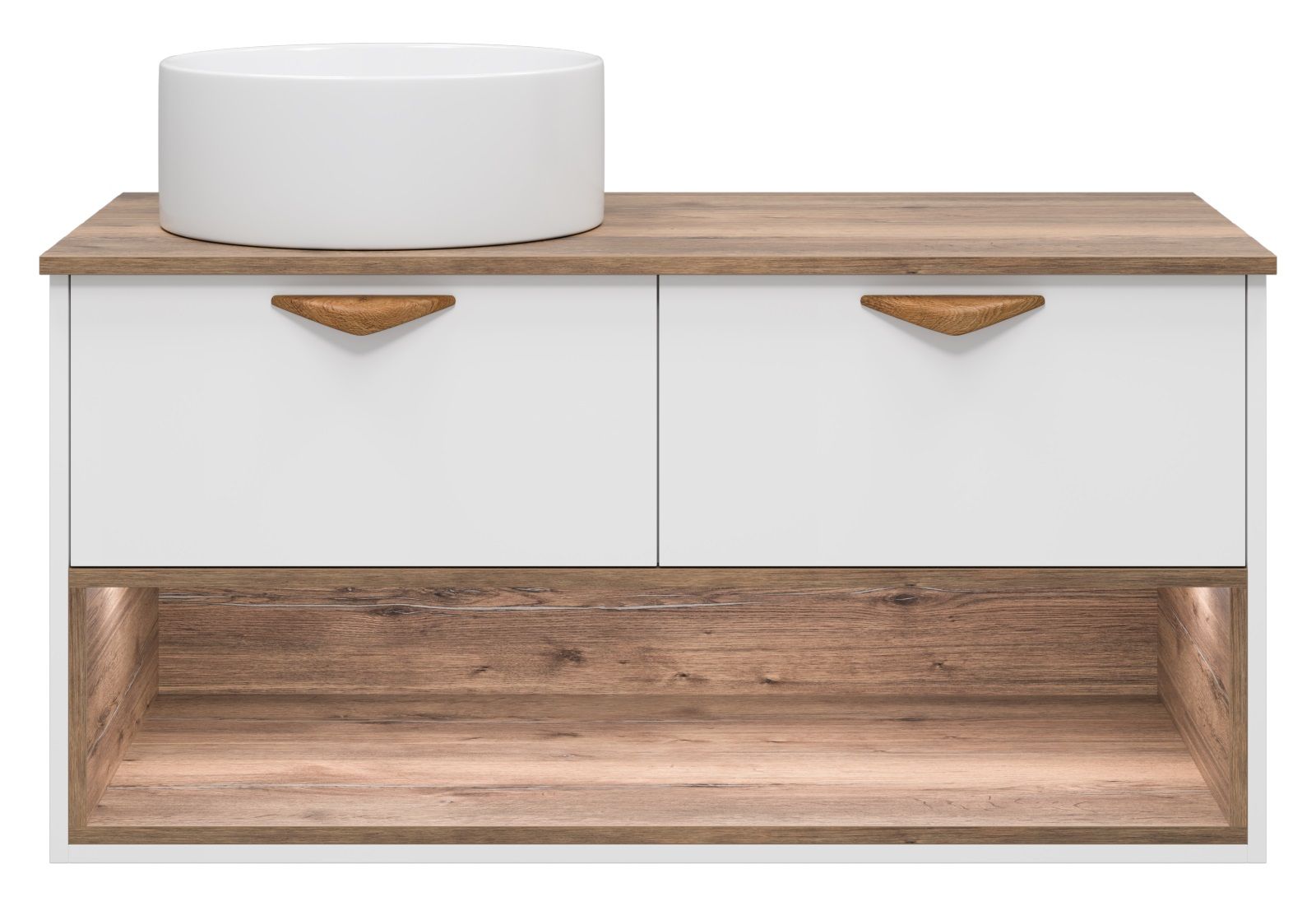 Подвесная тумба под раковину Brevita Bergen BER-07105-19-01-2Я с подсветкой 105см дуб Галифакс олово/белый
