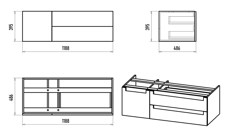 Подвесная тумба под раковину Brevita Cargo CAR-01120-021П2Я 120см чёрный